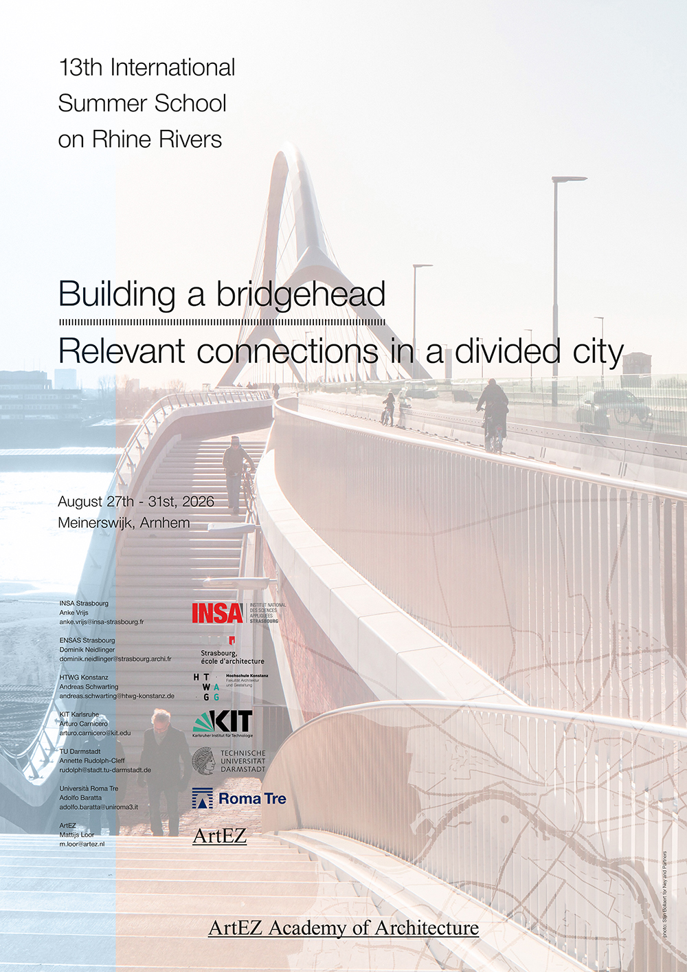 Beteiligte Hochschulen: Technische Universität Darmstadt TU Darmstadt (D), Hochschule Konstanz HTWG Konstanz (D-Federführung), Karlsruher Institut für Technologie KIT (D), École Nationale Supérieure d'Architecture de Strasbourg ENSAS (F), Institut Nationale des Sciences Appliquées de Strasbourg INSA (F), Università degli Studi Roma Tre UNIROMATRE (I), Hogeschool voor de Kunsten Arnhem ArtEZ (NL)